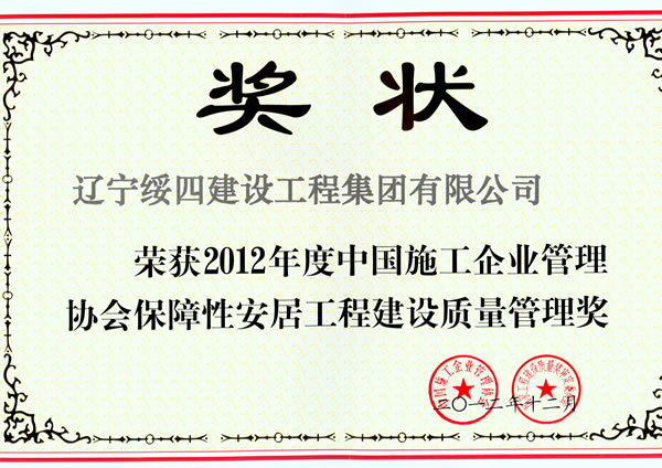 社會保障性安居工程建設(shè)質(zhì)量管理獎