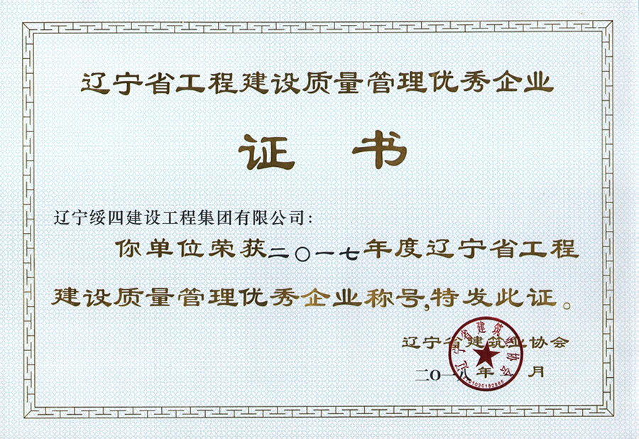 遼寧省工程建設(shè)質(zhì)量管理優(yōu)秀企業(yè)