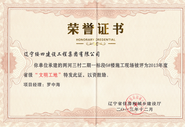 “三河兩村”2013省文明工地稱號