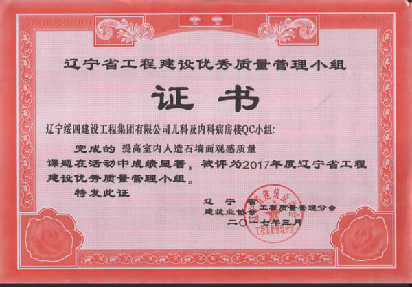 遼寧省工程建設優(yōu)秀質量管理小組