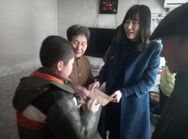 2018年3月6日,集團(tuán)工會主席劉霜、造價部部長明輝、財務(wù)部呂賀及實驗小學(xué)趙瑞如老師等四人來看望慰問實驗小學(xué)貧困學(xué)生信博,并送去米、面、油等生活用品及助學(xué)金。