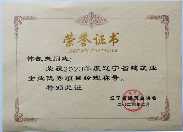 遼寧綏四建設(shè)工程集團(tuán)有限公司的高軍、羅忠海、韓凱夫三名同志被評(píng)為2023年度遼寧省建筑業(yè)企業(yè)優(yōu)秀項(xiàng)目經(jīng)理,并于2024年5月獲得遼寧省建筑業(yè)協(xié)會(huì)頒發(fā)的榮譽(yù)證書。