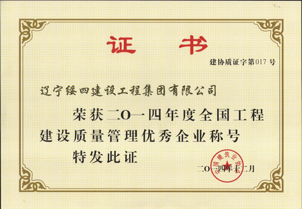 全國工程建設(shè)質(zhì)量管理優(yōu)秀企業(yè)稱號