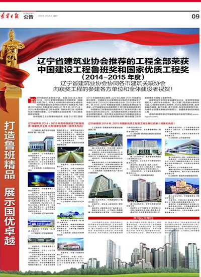 遼寧省建筑業(yè)協(xié)會(huì)推薦的工程全部榮獲中國(guó)建設(shè)工程魯