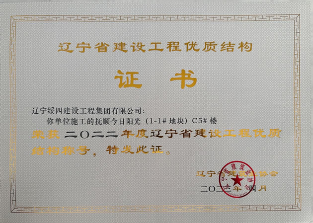 撫順今日陽光 11# 地塊) C5# 樓榮獲2022年度遼寧省建設(shè)工程優(yōu)質(zhì)結(jié)構(gòu)稱號(hào)