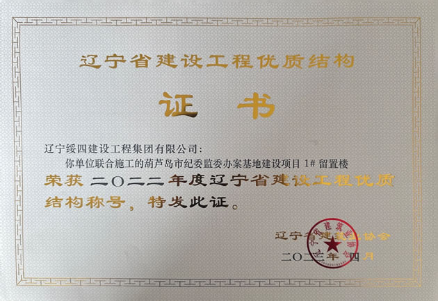 葫蘆島市紀(jì)委監(jiān)委辦案基地建設(shè)項目1# 留置樓榮獲2022年度遼寧省建設(shè)工程優(yōu)質(zhì)結(jié)構(gòu)稱號