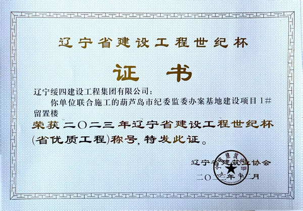 | 葫蘆島市紀(jì)委監(jiān)委辦案基地建設(shè)項(xiàng)目1#留置樓 榮獲2023年遼寧省建設(shè)工程世紀(jì)杯(省優(yōu)質(zhì)工程)稱號(hào) |