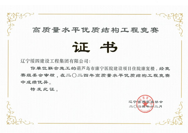 葫蘆島市康寧醫(yī)院建設(shè)項(xiàng)目住院康復(fù)樓被評(píng)為2024年高質(zhì)量水平優(yōu)質(zhì)結(jié)構(gòu)工程