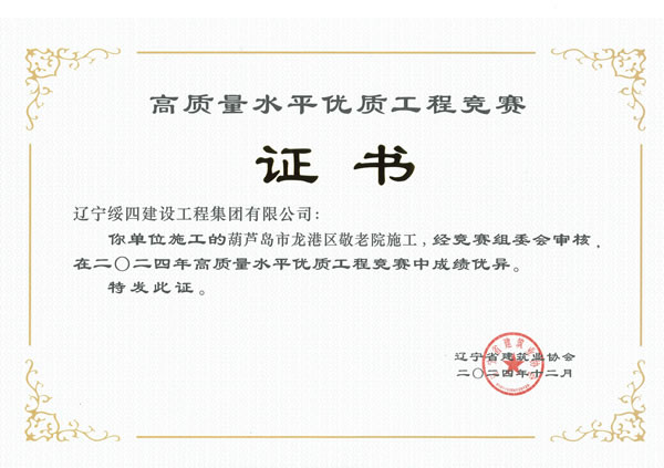 葫蘆島市龍港區(qū)敬老院施工項(xiàng)目被評為2024年市優(yōu)質(zhì)樣板工程