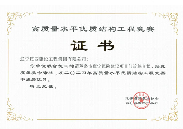 葫蘆島市康寧醫(yī)院建設(shè)項(xiàng)目門診綜合樓被評為2024年年高質(zhì)量水平優(yōu)質(zhì)結(jié)構(gòu)工程