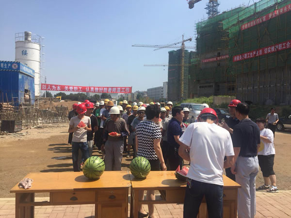 連日來,我市氣溫不斷攀升,嚴(yán)重影響著一線職工的身體健康和工作效率。2018年8月3日,市總工會(huì)到我集團(tuán)三和恬園住宅小區(qū)工程項(xiàng)目開展“送清涼”活動(dòng),為在高溫中奮戰(zhàn)的勞動(dòng)者帶來一絲清涼。