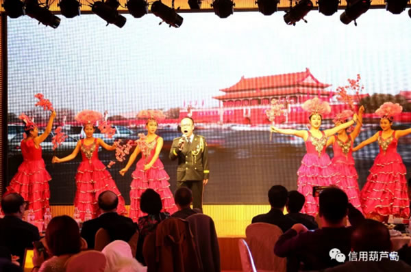 聯(lián)誼會上的文藝演出可以說是精彩紛呈,高潮迭起。歡快的開場舞引燃了全場的熱情,詩朗誦《誠信之歌》把每一個會員單位融入其中,用詩歌的形式講述著誠信的故事,讓大家心潮澎湃,備受鼓舞。歌曲《闖天涯》、《美麗的神話》還在耳邊余音繚繞。誠信主題小品《姜太公釣魚》讓大家在歡笑中體會誠信的重要,軍旅舞蹈英姿颯爽,鐵骨錚錚。阜新銀行綏中支行小伙伴們表演的三句半《會員贊》,用生動詼諧的方式為多家會員單位的優(yōu)異成績點(diǎn)贊,迎來掌聲陣陣!段覀兊淖鎳杼鸹ㄏ恪烦鋈珗鏊屑钨e熱愛祖國的心聲。