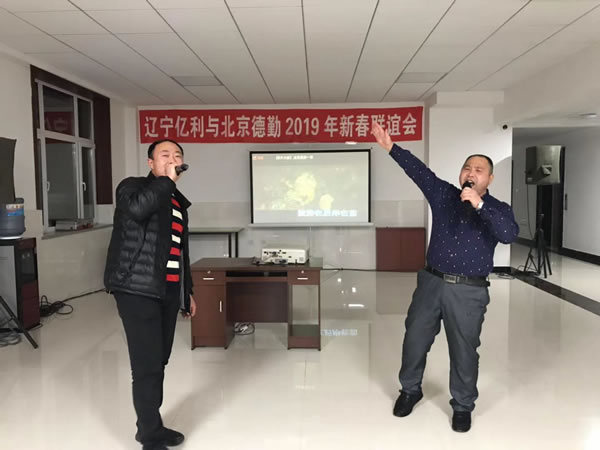值此新春佳節(jié)之際,作為東道主的我們?yōu)榱吮硎緦?duì)德勤公司同事的熱烈歡迎與新春祝福,當(dāng)晚,在領(lǐng)導(dǎo)的安排下,我公司舉辦了一場(chǎng)“遼寧億利與北京德勤2019年新春聯(lián)誼會(huì)”。聯(lián)誼會(huì)上大家積極踴躍的表演才藝,機(jī)電設(shè)備部部長(zhǎng)潘曉閣和機(jī)電設(shè)備部賀善強(qiáng)師傅高歌一首《眾人劃槳開(kāi)大船》將整個(gè)聯(lián)誼會(huì)推上了高潮。