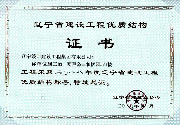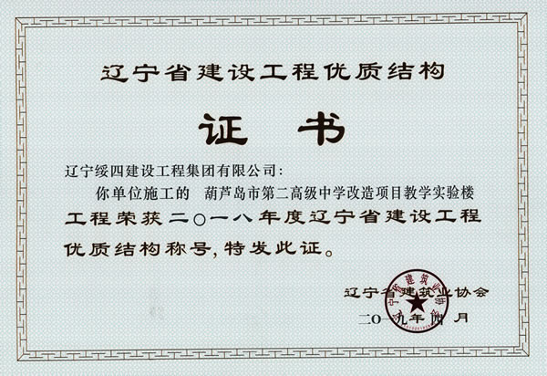 由企業(yè)自愿申報,有關(guān)單位擇優(yōu)推薦,遼寧省建筑業(yè)協(xié)會工程質(zhì)量管理分會組織專家組對工程復(fù)查并經(jīng)省建設(shè)工程質(zhì)量評審委員會審定,以及社會公示等一系列評價認(rèn)定。由我公司承建的“葫蘆島三和恬園13#樓”、“葫蘆島市第二高級中學(xué)改造項(xiàng)目教學(xué)實(shí)驗(yàn)樓”工程被評為“2018年度遼寧省建設(shè)工程優(yōu)質(zhì)結(jié)構(gòu)”工程。