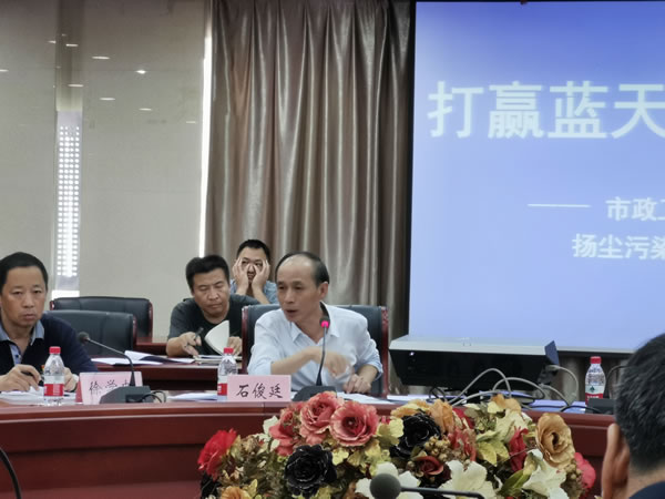 會(huì)議由葫蘆島市建設(shè)工程服務(wù)中心溫江山副主任主持。會(huì)上,徐學(xué)忠副主任傳達(dá)了《葫蘆島市人民政府辦公室關(guān)于印發(fā)葫蘆島市大氣污染防治工作考核辦法的通知》。石俊廷主任從評(píng)分標(biāo)準(zhǔn)、考核辦法等方面部署了市政工程和建筑工地藍(lán)天保衛(wèi)戰(zhàn)考核工作。