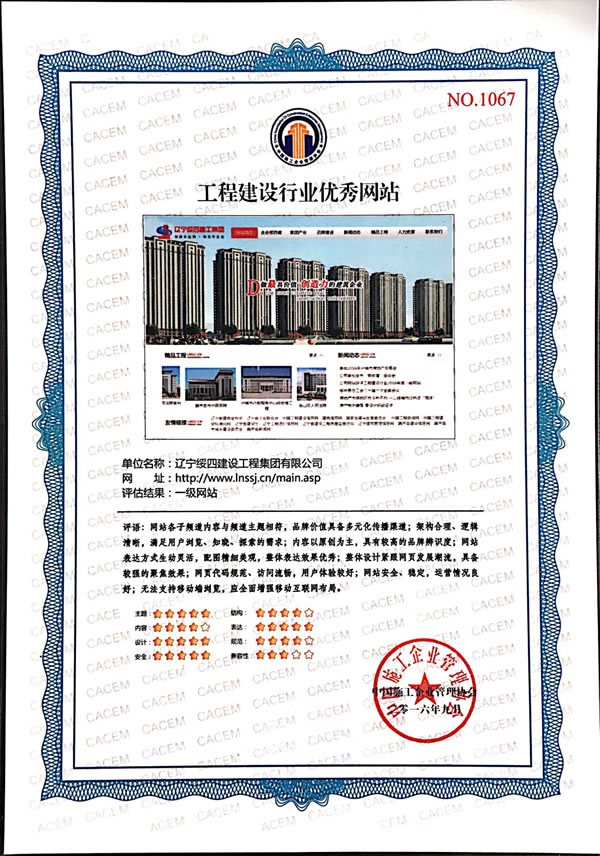 會(huì)議最后,中施企協(xié)與網(wǎng)站建設(shè)專業(yè)機(jī)構(gòu)——北京新鴻儒世紀(jì)網(wǎng)絡(luò)技術(shù)有限公司聯(lián)合發(fā)布了《2016年工程建設(shè)行業(yè)網(wǎng)站建設(shè)情況調(diào)查報(bào)告》。我公司網(wǎng)站因架構(gòu)合理、邏輯清晰,內(nèi)容以原創(chuàng)為主,具有較高的品牌辨識(shí)度,表達(dá)方式生動(dòng)靈活等特點(diǎn),被專家組評(píng)定為一級(jí)網(wǎng)站,并榮獲“2016年工程建設(shè)行業(yè)優(yōu)秀網(wǎng)站”。