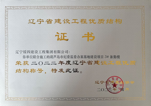 葫蘆島市紀(jì)委監(jiān)委辦案基地建設(shè)項目 3# 備勤樓榮獲2022年度遼寧省建設(shè)工程優(yōu)質(zhì)結(jié)構(gòu)稱號