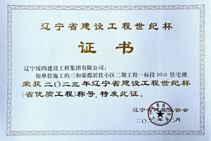 三和榮郡居住小區(qū)二期工程一標段10#住宅樓 榮獲2023年遼寧省建設(shè)工程世紀杯(省優(yōu)質(zhì)工程)稱號